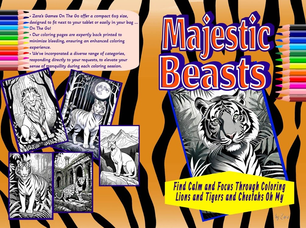 π¨π― Welcome to "Majestic Beasts," where the strength, grace, and mystery of the worldβs most powerful felines come to life through mindful coloring and artistic expression. ποΈπ